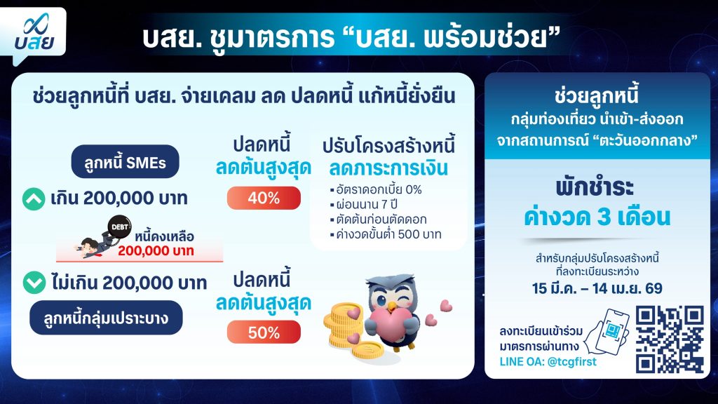 บสย. ช่วยลูกหนี้ ลดต้นสูงสุด 50% พักชำระยาว 3 เดือน