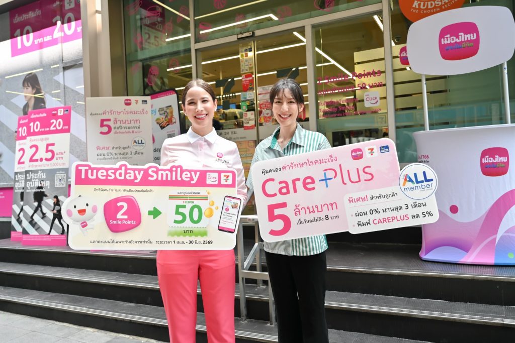 ทั้งนี้ เมืองไทยประกันชีวิต ซีพี ออลล์ และเคาน์เตอร์เซอร์วิส ยังได้จัดแคมเปญพิเศษสำหรับสมาชิก All Member ด้วยการนำเสนอแบบประกันออนไลน์ โครงการเมืองไทยCare Plus โรคร้ายแรง ให้ความคุ้มครองค่ารักษาโรคมะเร็ง ครอบคลุมทั้งผู้ป่วยในและผู้ป่วยนอก วงเงินครอบคลุมค่าปรึกษาทางจิตเวช 5 ล้านบาทต่อปีกรมธรรม์ ซื้อได้อายุ 20 – 70 ปี ดูแลถึงอายุ 99 ปี โดยสมาชิก All Member จะรับส่วนลด ค่าเบี้ยประกันปีแรกทันที 5% เมื่อพิมพ์รหัสส่วนลดตามที่กำหนด และสามารถผ่อนชำระค่าเบี้ยประกัน 0% นานสูงสุด 3 เดือน (เมื่อมียอดเบี้ยประกันรายปีขั้นต่ำ 6,000 บาท) ระยะเวลาแคมเปญตั้งแต่วันที่ 31 มีนาคม 2569 – 30 เมษายน 2569
