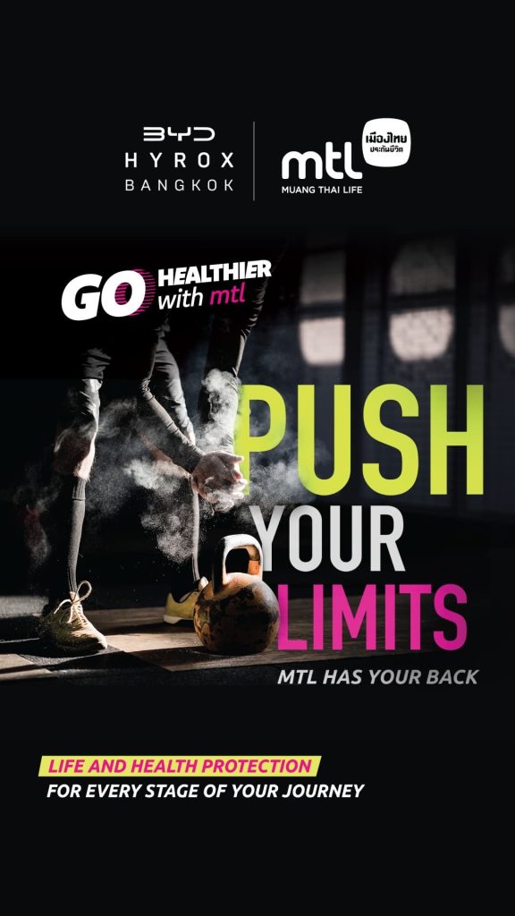 บริษัท เมืองไทยประกันชีวิต จำกัด (มหาชน) หรือ MTL ตอกย้ำบทบาทผู้นำด้านการดูแลสุขภาพ แบบองค์รวม ประกาศร่วมเป็น Official Insurance Partner ในการแข่งขัน BYD HYROX Bangkok งานแข่งขันฟิตเนสระดับโลกที่ผสมผสานการวิ่งและการออกกำลังกายแบบ Functional Training ซึ่งจะจัดขึ้นระหว่าง วันที่ 20–22 มีนาคม 2569 นี้ ณ ศูนย์นิทรรศการและการประชุมไบเทค บางนา (BITEC)