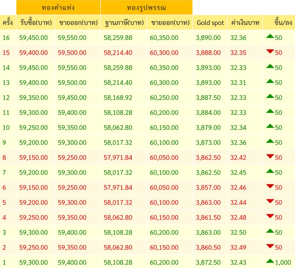 • ทองคำเปลี่ยนแปลงทั้งหมด 16 ครั้ง ราคาทองปรับขึ้น 1,150