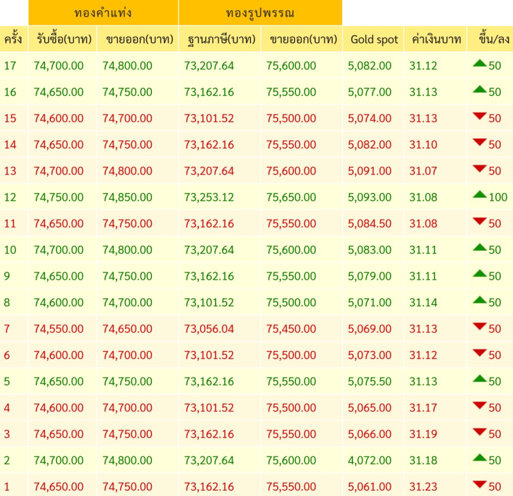 • ทองคำเปลี่ยนแปลงทั้งหมด 17 ครั้ง ราคาทองคงที่