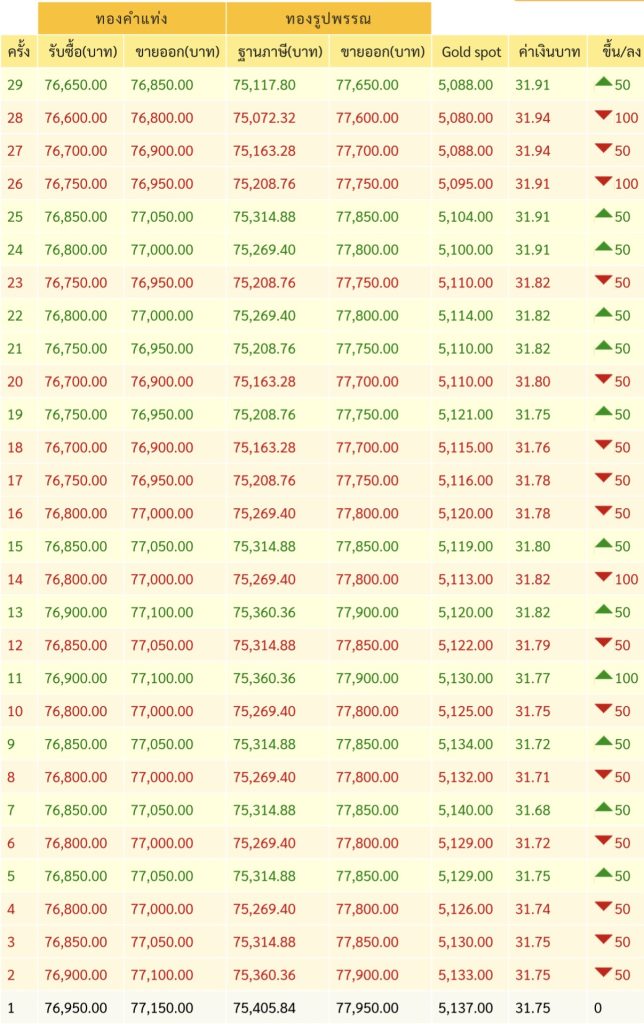 • ทองรูปพรรณขายออกบาทละ 77,650 บาท