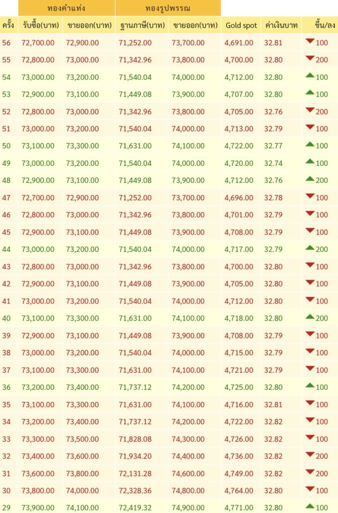 • ทองรูปพรรณขายออกบาทละ 73,700 บาท