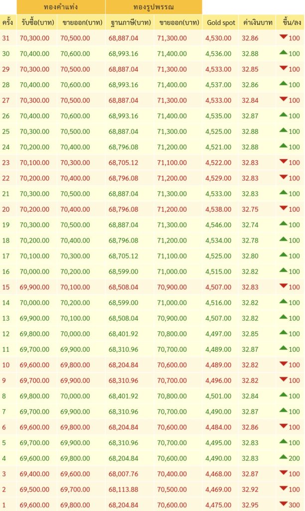• ทองคำแท่งขายออกบาทละ 70,500 บาท