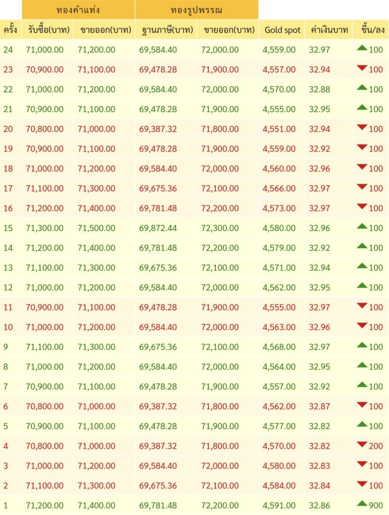 • ทองคำแท่งขายออกบาทละ 71,200 บาท