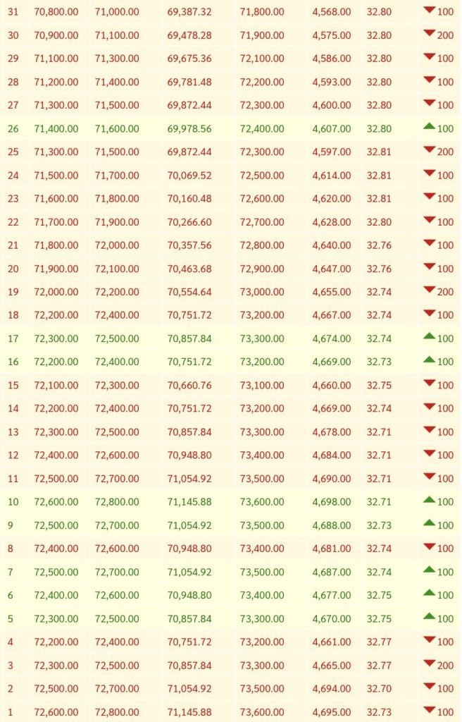 • ทองรูปพรรณขายออกบาทละ 72,500 บาท