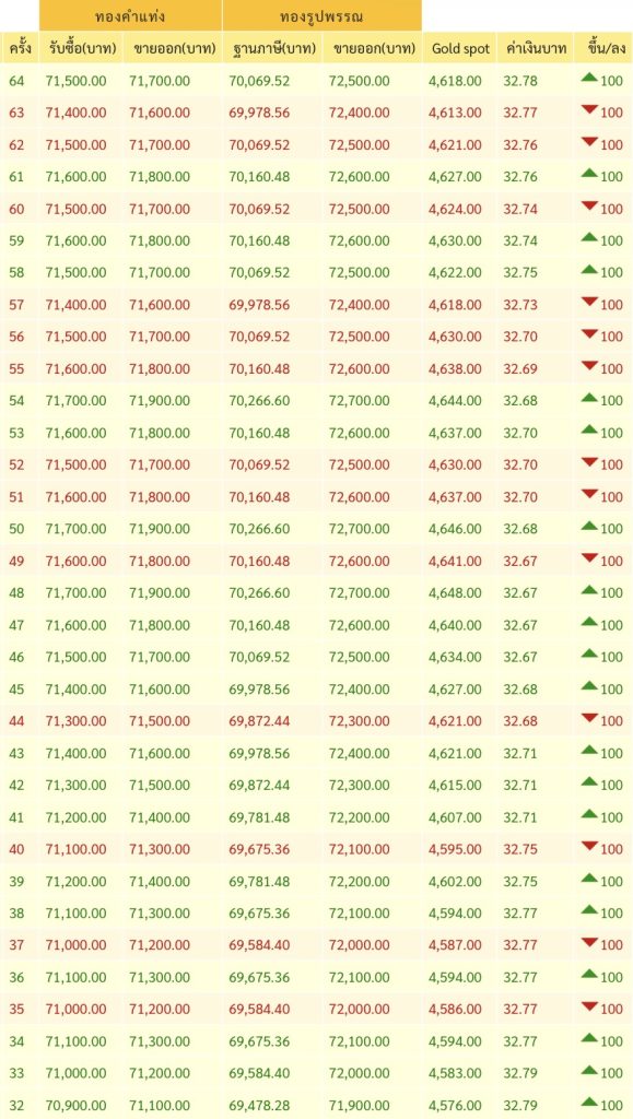 • ทองคำเปลี่ยนแปลงทั้งหมด 64 ครั้ง ราคาทองปรับลง 1,200 บาท