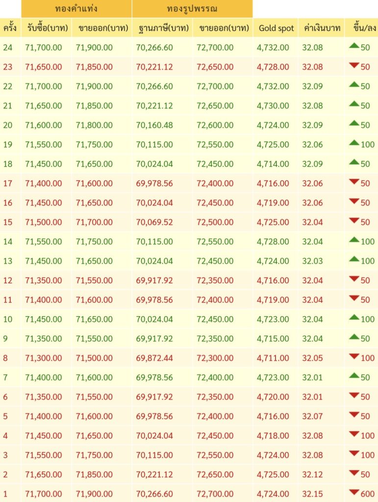 • ทองคำแท่งขายออกบาทละ 71,900 บาท