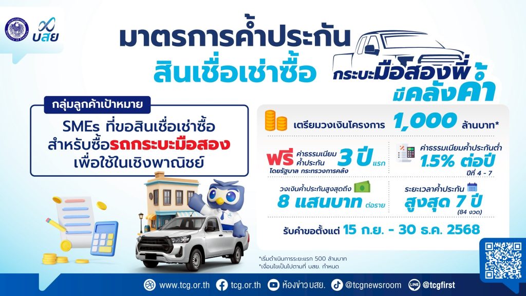 นายสิทธิกร ดิเรกสุนทร กรรมการและผู้จัดการทั่วไป บรรษัทประกันสินเชื่ออุตสาหกรรมขนาดย่อม (บสย.) เปิดเผยว่า บสย. ได้ขยายความช่วยเหลือผู้ประกอบการ SMEs ที่ต้องการซื้อรถกระบะเชิงพาณิชย์ ในการประกอบอาชีพและทำธุรกิจ ล่าสุดได้เปิดตัวมาตรการ “กระบะ (มือสอง) พี่ มีคลังค้ำ” เบื้องต้นได้จัดเตรียมวงเงินค้ำประกันสินเชื่อ 1,000 ล้านบาท โดยเริ่มดำเนินการระยะแรก 500 ล้านบาท ต่อยอดจากมาตรการค้ำประกันสินเชื่อเช่าซื้อรถกระบะใหม่ “กระบะพี่ มีคลังค้ำ” ซึ่งเปิดตัวเมื่อเดือนมีนาคม 2568 ที่ผ่านมา เพื่อให้การช่วยเหลือ SMEs ครอบคลุมทั้งการซื้อรถกระบะใหม่ และรถกระบะมือสอง มุ่งช่วย SMEs รายย่อย กลุ่มเกษตรกร และธุรกิจขนส่งขนาดเล็ก ที่อาจมีรายได้ไม่สม่ำเสมอ สามารถเข้าถึงสินเชื่อซื้อรถกระบะได้ง่ายขึ้น โดยตั้งเป้าว่าจากมาตรการนี้ จะช่วย “ปลดล็อก” ธุรกิจให้สามารถเดินหน้าต่อได้อย่างยั่งยืน ทั้งช่วยสนับสนุนอุตสาหกรรมยานยนต์ที่ซบเซาให้กลับมาคึกคัก ซึ่งจะส่งผลต่อการขับเคลื่อนเศรษฐกิจไทยในภาพรวม