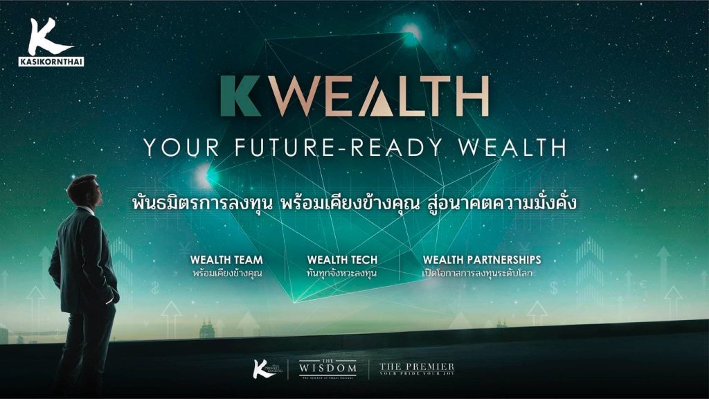 ธนาคารกสิกรไทย ตอกย้ำความเป็นผู้นำอันดับ 1 ด้านบริหารความมั่งคั่ง ยกระดับ K WEALTH เป็น “Lifelong Trusted Advisor ที่ปรึกษาด้านการลงทุนที่ลูกค้าไว้ใจในทุกช่วงชีวิต” ศูนย์รวมความเชี่ยวชาญในการบริหารความมั่งคั่ง พร้อมโซลูชันที่ครอบคลุม การเงิน การลงทุน ธุรกิจ และการดูแลคุ้มครองรอบด้าน ภายใต้คอนเซ็ปต์ “Your Future-Ready Wealth พันธมิตรการลงทุน พร้อมเคียงข้างคุณ สู่อนาคตความมั่งคั่ง” มุ่งเสริมแกร่งให้นักลงทุนไทยรับมือปัจจัยผันผวนของ VUCA ทั้งเศรษฐกิจ ตลาดทุน และภูมิรัฐศาสตร์ โดยผสาน 3 ศักยภาพของ Wealth Team, Wealth Tech และ Wealth Partnerships