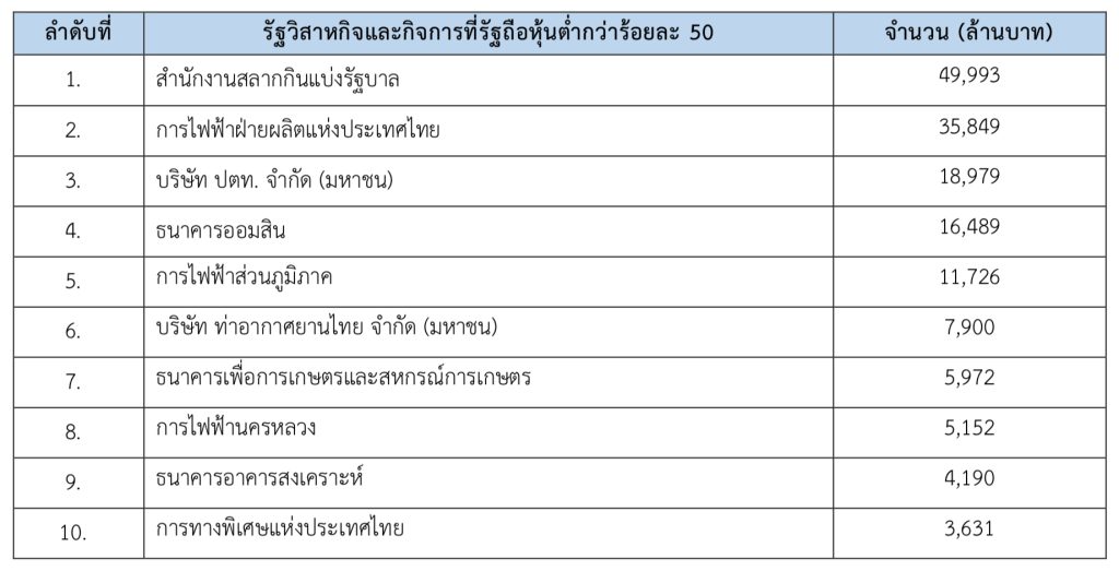 นายธิบดี วัฒนกุล ผู้อำนวยการสำนักงานคณะกรรมการนโยบายรัฐวิสาหกิจ (สคร.) เปิดเผยว่า ในปีงบประมาณ 2568 (1 ตุลาคม 2567 – 30 กันยายน 2568) สคร. มีเป้าหมายในการจัดเก็บเงินนำส่งรายได้แผ่นดิน/เงินปันผลจากรัฐวิสาหกิจและกิจการที่รัฐถือหุ้นต่ำกว่า 50% (เงินนำส่งรายได้แผ่นดินฯ) จำนวน 176,500 ล้านบาท โดย สคร. สามารถจัดเก็บเงินนำส่งรายได้แผ่นดินฯ สะสมรวมทั้งสิ้น จำนวน 177,379 ล้านบาท สูงกว่าเป้าหมายการจัดเก็บทั้งปีอยู่ที่จำนวน 879 ล้านบาท หรือคิดเป็น 100.5% ทั้งนี้ รัฐวิสาหกิจที่นำส่งรายได้แผ่นดินหรือเงินปันผลสูงสุด 10 อันดับแรก แสดงได้ตามตาราง ดังนี้