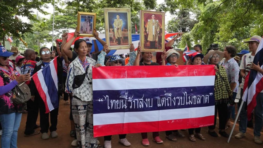 บริเวณบ้านหนองจาน ตำบลโนนหมากมุ่น อำเภอโคกสูง จังหวัดสระแก้ว เต็มไปด้วยประชาชนและสื่อมวลชนจำนวนมาก ที่เดินทางมารวมตัวกันในพื้นที่แสดงสัญลักษณ์และให้กำลังใจกำลังพลทหาร ฝ่ายปกครอง ที่ปฏิบัติหน้าที่ตามแนวชายแดนไทย-กัมพูชา จ.สระแก้ว กองทัพไทย เริ่มปฏิบัติการเคลียร์ทุ่นระเบิด บ้านหนองจาน-หนองหญ้าแก้ว จ.สระแก้ว