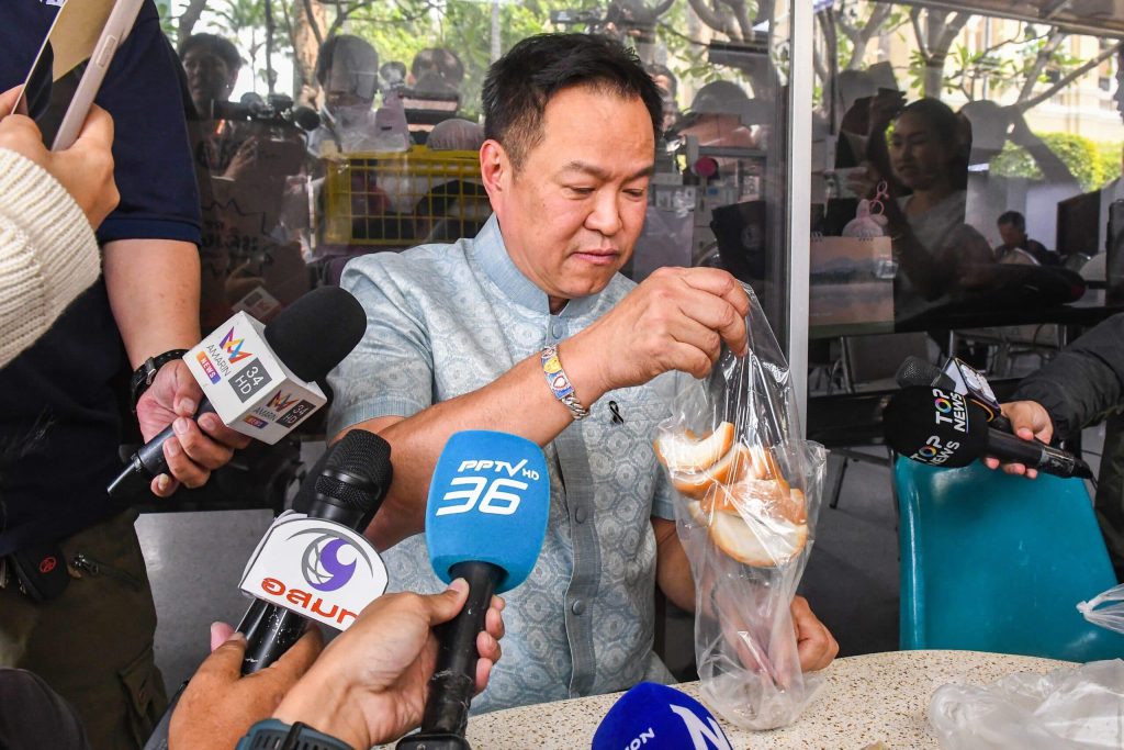 นายอนุทิน ชาญวีรกูล นายกรัฐมนตรีและรัฐมนตรีว่าการกระทรวงมหาดไทย เดินทางกลับจากรับประทานอาหารกลางวัน พอถึงทำเนียบรัฐบาล ได้ลงจากรถ ก่อนจะแวะห้องพักผู้สื่อข่าวประจำทำเนียบรัฐบาล พร้อมนั่งทานขนมครก และฝรั่งแช่บ๊วย โดยผู้สื่อข่าวสอบถามถึงกรณี กกต. ประกาศรับรอง สส.แบบเขต 396 คน นายอนุทิน กล่าวว่า เรื่องนี้ไม่เกี่ยวกับรัฐบาล ให้เป็นหน้าที่พรรคการเมืองและ สส. ไปดำเนินการตามขั้นตอน ระหว่างนั้นผู้สื่อข่าวพยายามถามต่อว่า ตกลงแล้วไม่มีพรรคกล้าธรรมร่วมรัฐบาลหรือไม่ นายอนุทิน หยิบขนมครกเข้าปาก ก่อนจะลุกขึ้นเดินออกจากวงสัมภาษณ์ เพื่อเดินขึ้นตึกไทยคู่ฟ้า ผู้สื่อข่าวถามต่อว่าจำนวนเสียงสนับสนุน 292 เสียง จะปิดดีลจัดตั้งรัฐบาลเลยหรือไม่ นายอนุทิน ตอบว่า “ยังไม่ได้เปิดอะไรเลย”