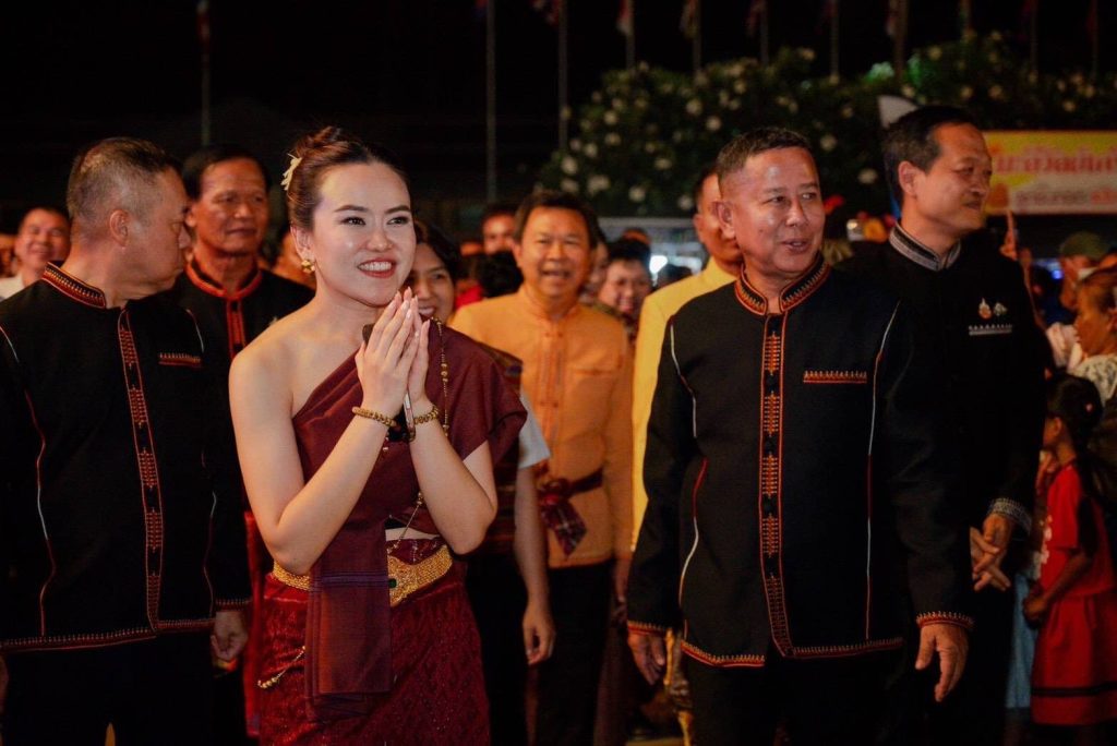 กวาง ไตรศุลี ไตรสรณกุล อดีตเลขานายกรัฐมนตรี สส.บัญชีรายชื่อ พรรคภูมิใจไทย ห่มสะไบ ในงาน “ฟื้นฟูใจคนเมืองกันทร์ ร้อยรักสามัคคี สดุดีทหารกล้า” จัดที่สนามหน้าที่ว่าการอำเภอกันทรลักษ์ จ.ศรีสะเกษ 3-5 เม.ย.ที่ผ่านมา โดยมีพลโท อดุลย์ บุญธรรมเจริญ รัฐมนตรีว่าการกระทรวงกลาโหม ประธานในพิธีเปิด
