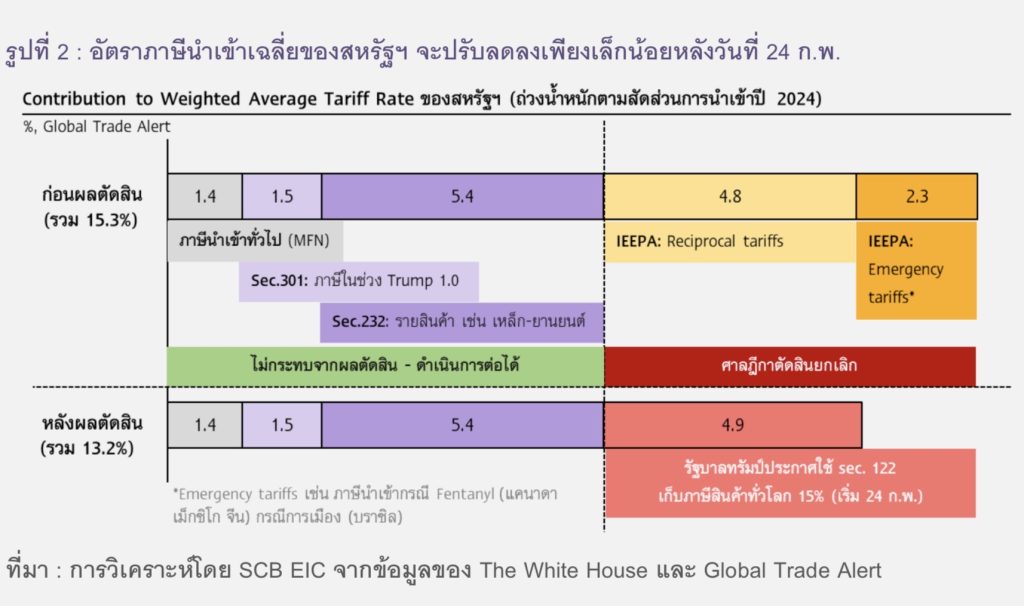 รูปที่ 2 : อัตราภาษีนำเข้าเฉลี่ยของสหรัฐฯ จะปรับลดลงเพียงเล็กน้อยหลังวันที่ 24 ก.พ.