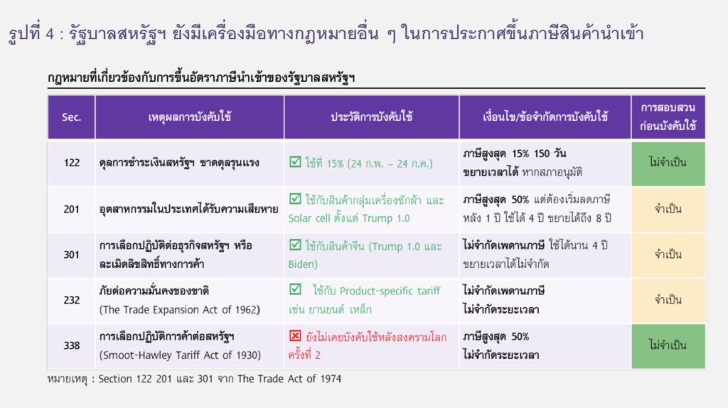 รูปที่ 4 : รัฐบาลสหรัฐฯ ยังมีเครื่องมือทางกฎหมายอื่น ๆ ในการประกาศขึ้นภาษีสินค้านำเข้า