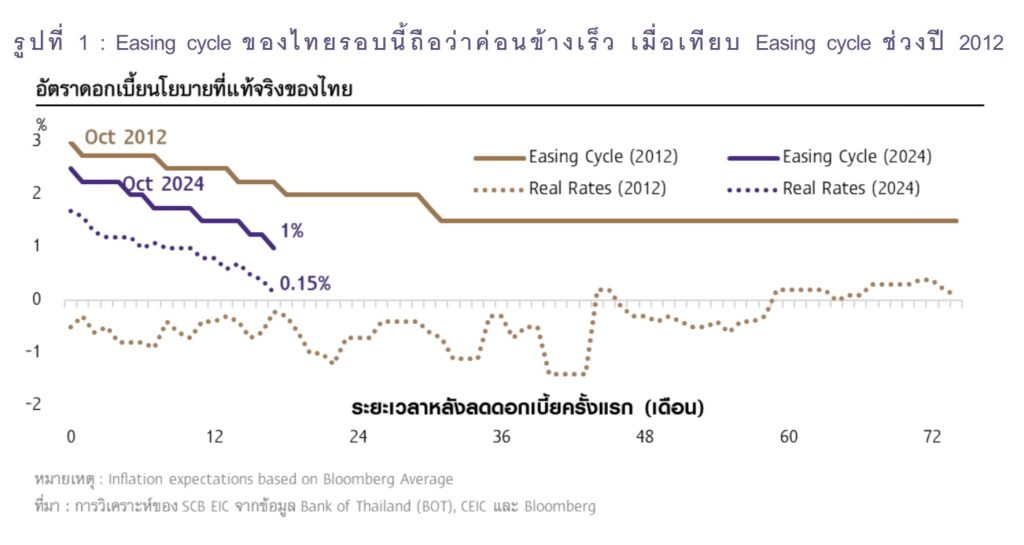 รูปที่ 1 : Easing cycle ของไทยรอบนี้ถือว่าค่อนข้างเร็ว เมื่อเทียบ Easing cycle ช่วงปี 2012