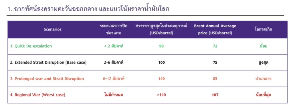 1. ฉากทัศน์สงครามตะวันออกกลาง และแนวโน้มราคาน้ำมันโลก