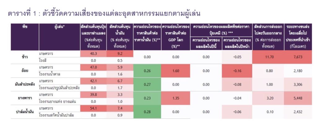 เกษตรกรทั้ง 5 พืชจะได้รับผลกระทบสุทธิเป็นลบ ในขณะที่โรงงานแปรรูปพืช 4 ชนิด ยกเว้นข้าวจะได้รับผลสุทธิเป็นบวก แต่ยังต้องเผชิญความไม่แน่นอนสูงในหลายด้าน