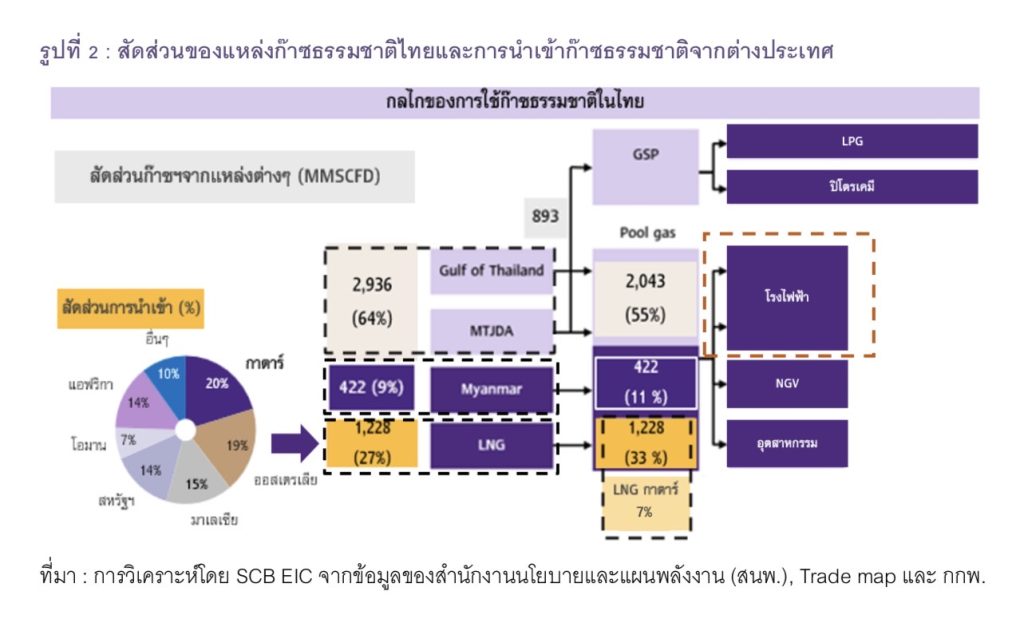 รูปที่ 2 : สัดส่วนของแหล่งก๊าซธรรมชาติไทยและการนำเข้าก๊าซธรรมชาติจากต่างประเทศ