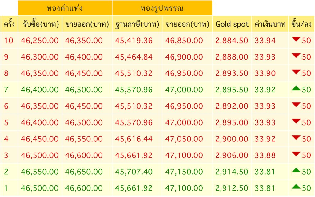 • ทองคำแท่งขายออกบาทละ 46,350 บาท