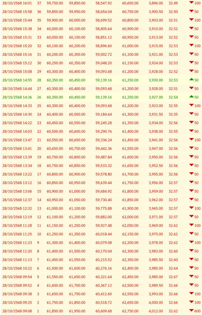 ราคาทองคำวันนี้ (28 ต.ค. 68) เปลี่ยนแปลงทั้งหมด 49 ครั้ง ราคาทองปรับลง 2,650