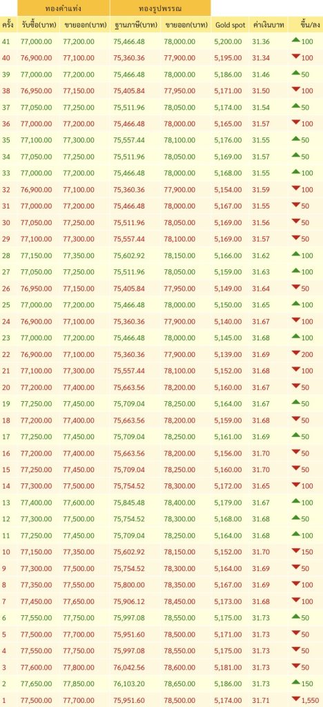 • ทองคำแท่งขายออกบาทละ 77,200 บาท